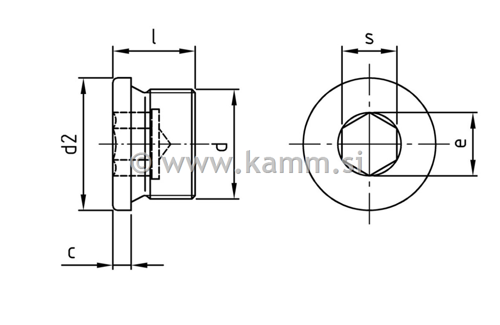 kamm.si Vijaki in vezni elementi Vijaki Zaporni čepi Zaporni čep z glavo in notranjim šestkotom DIN 908 Inox zaporni čep DIN 908