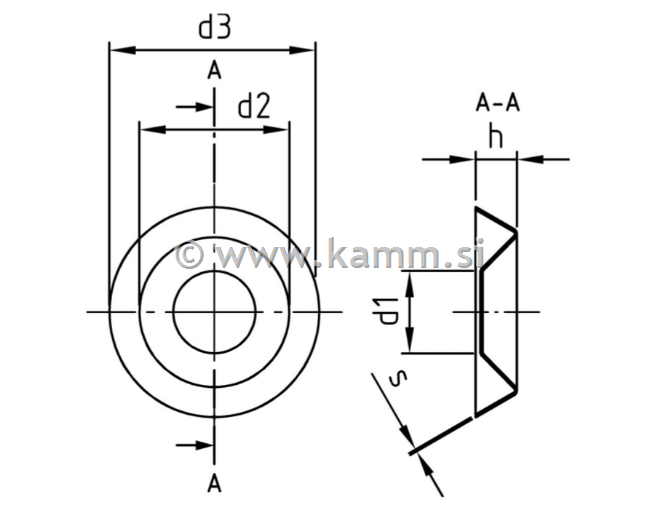 kamm.si Vijaki in vezni elementi Podložke Podložke za vgreznjene vijake Inox podložka za vgreznjen vijak NF E27-619
