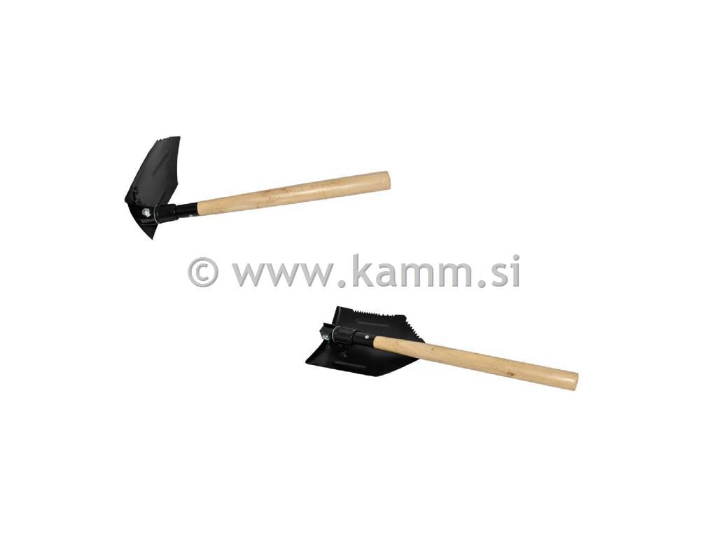 Priročna zložljiva lopata za kampiranje in aktivnosti na prostem. Uporablja se lahko kot lopata, kramp ali žaga.