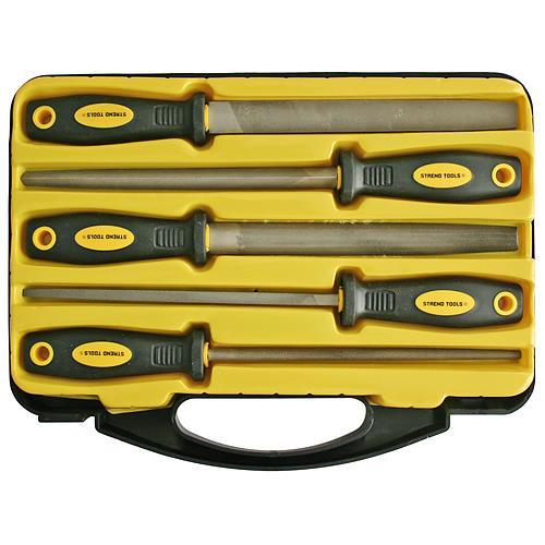 5-delni komplet pil različnih oblik - kvadratna, polokrogla, trikotna, ploščata in okrogla. V priročnem kovčku.
