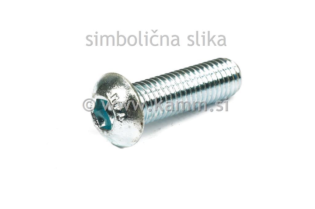 Cinkani imbus vijak z bombirano glavo premera M0 (0 mm), dolžine 55 mm, kvalitete , DIN standard .